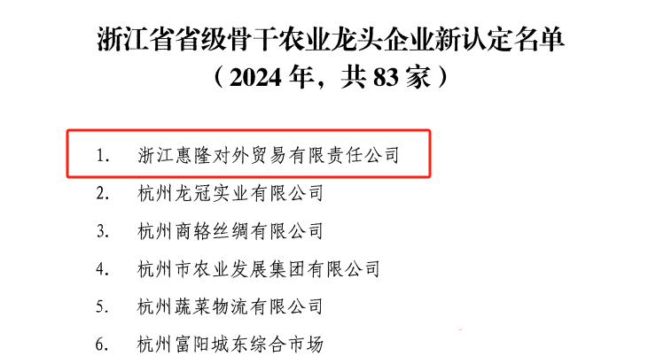 新認定!浙江惠隆獲評省級骨干農業龍頭企業稱號