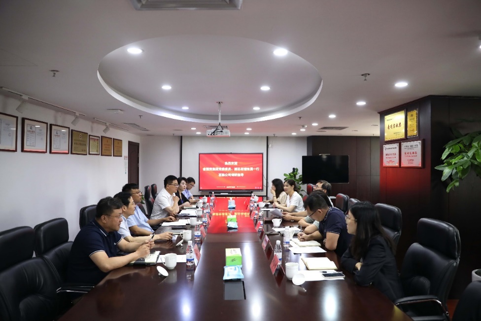 7月6日上午,省國貿集團黨委委員、副總經理張勇一行來浙江土畜調研,集團經營管理部、戰略發展與法律事務部相關負責人陪同調研,公司領導張斌、楊躍勝等領導班子成員及相關部門人員參加座談。